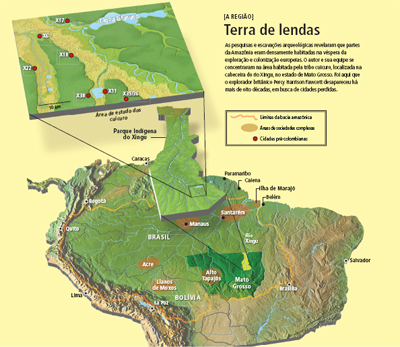 A pessoa mais famosa a buscar civilizações perdidas no sul da Amazônia foi Percy Harrison Fawcett O aventureiro britânico esquadrinhou o que denominou “selvas não mapeadas”, buscando uma cidade antiga – a Atlântida – na Amazônia, repleta de pirâmides de pedra, ruas de seixos e escrita alfabética. Suas narrativas inspiraram Conan Doyle em O mundo perdido e talvez os filmes de Indiana Jones. O recente e empolgante livro de David Grann, The lost city of Z (Z, a cidade perdida), refez o trajeto de Fawcett antes de seu desaparecimento no Xingu, em 1925.
