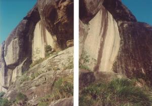 Com certeza havia mais solo na base da Barba do Imperador, é possível que até se pudesse chegar à Gruta da Orelha caminhando desde a Carrasqueira. Como já disse anteriormente as chuvas torrenciais estão levando todo o solo ladeira abaixo e considerando isto, podemos calcular e a enorme perda ao longo dos séculos. Quando desenvolver a parte referente à Mesa do topo da Pedra da Gávea, veremos quantos deslizamentos houve levando enormes partes da área que era bastante mais plana que hoje. Inclusive podem ter levado vestígios importantes.