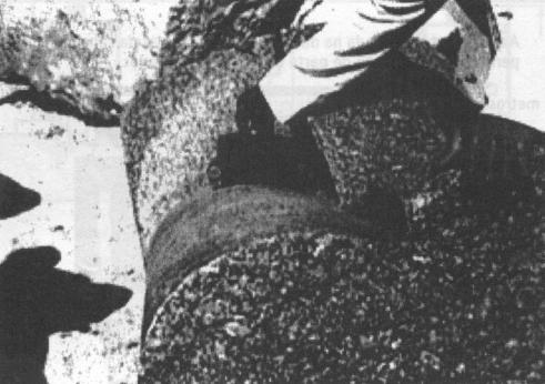Obediente, comprei as passagens e cheguei em Assuã no dia seguinte. Após aprender alguns costumes egípcios, fiquei com a impressão de que essa não era a primeira vez que meu amigo egiptólogo se dirigia à agência de turismo para sugerir viagens a Assuã. Observando as marcas da extração, os métodos descritos, que seriam o único meio pelo qual os construtores de pirâmides extrairiam blocos das rochas de Assuã, não me satisfizeram. Encontra-se lá um grande furo circular, feito na lateral do leito rochoso, que tem uns 37 cen tímetros de diâmetro e um metro de profundidade, localizado no canal que percorre a extensão do obelisco – cujo peso estimado é de 3 mil toneladas. O furo foi feito em ângulo, com a parte superior invadindo o espaço do canal. Os antigos podem ter usado brocas para remover material do perímetro do obelisco, extraído esse material entre os furos e depois removido as pontas.9