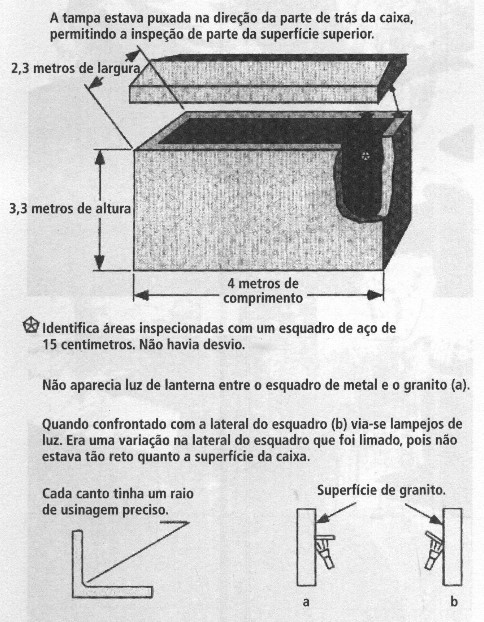 […] Além de indícios externos, outros indicadores do emprego de máquinas de alta velocidade podem ser encontrados no interior do sarcófago de granito da Câmara do Rei. Os métodos evidentemente usados pêlos construtores de pirâmides para escavar o interior dos sarcófagos de granito são similares aos métodos usados hoje para usinar o interior de componentes.”