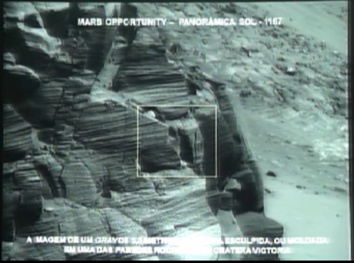 Suposta estátua esculpida em paredão de rocha, semelhante às estátuas egípcias.
