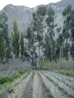 Esta plantação está a aproximadamente 2.800 metros sobre o nível do mar em um vale próximo aos picos nevados perto da cidade.