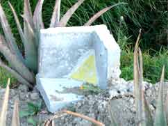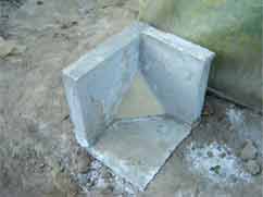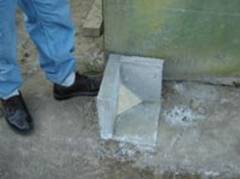 Estes moldes de cimento foram instalados em cada um dos quatro cantos dos terrenos retangulares escolhidos, com os triângulos virados em direção ao centro da Pirâmide invisível que se queria formar. As linhas amarelas nas fotos representam as linhas invisíveis de energia que projetam a forma piramidal.