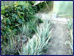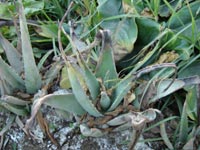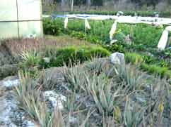 A geada queimou as pontas destas plantas, apesar de que por seu tamanho pequeno estavam agrupadas e mais próximas entre si que as plantas na foto anterior, estão dentro da pirâmide e mais separadas umas das outras. A foto seguinte é um vista de perto desse grupo de plantas.