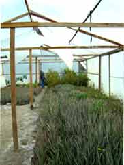 Na foto, pode-se ver o teto da estufa estragado pelos fortes ventos e pelo desgaste dos raios solares.