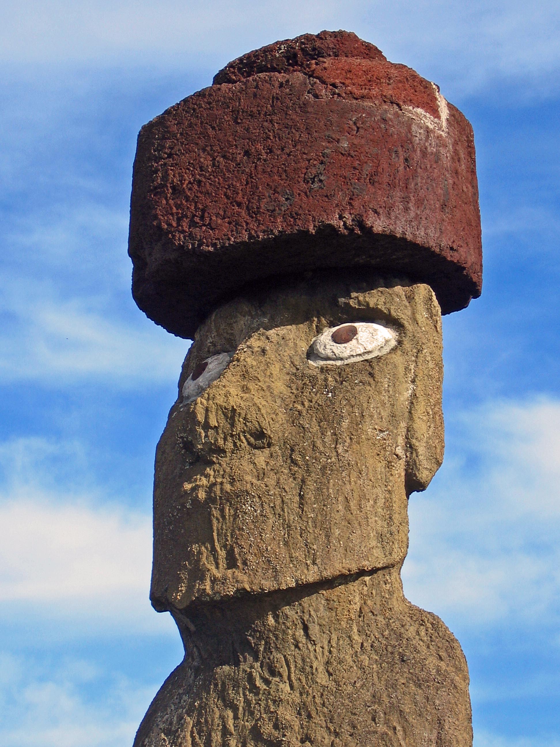 Quanto aos moais, que representam ancestrais de membros da elite, Jô Anne Van Tilburg inventariou um total de 887, dos quais quase a metade ainda está na pedreira de Rano Raraku, enquanto a maioria dos moais transportados para fora da pedreira foram erguidos em ahus (de 1 a 15 por ahu). Todas as estátuas de ahu eram feitas de tufo vulcânico de Rano Raraku, mas algumas dezenas de estátuas em outras partes (o total atual é de 53) foram esculpidas em outros tipos de pedra vulcânica que ocorrem na ilha (conhecidas como basalto, escória vermelha, escória cinza e traquito). A estátua “padrão” tinha quatro metros de altura e pesava cerca de 10 toneladas. A estátua mais alta erguida com sucesso, conhecida como Paro, tinha 10 metros de altura, mas era magra e pesava “apenas” 75 toneladas, ultrapassada, portanto, pelas estátuas de 87 toneladas ligeiramente menores embora mais corpulentas do Ahu Tongariki, que desafiaram Claudio Cristino em seus esforços de reerguê-las com um guindaste. Os insulares conseguiram transportar uma estátua alguns centímetros mais alta que Paro até o lugar onde seria erguida, no Ahu Hanga Te Tenga, mas esta infelizmente tombou durante as tentativas de erguê-la. A pedreira de Rano Raraku contém estátuas não terminadas ainda maiores, incluindo uma de 21 metros de comprimento e pesando cerca de 270 toneladas. Sabendo o que sabemos sobre a tecnologia da ilha de Páscoa, parece impossível que os insulares pudessem tê-las transportado e erguido, e somos levados a imaginar que tipo de megalomania possuiu seus escultores.