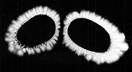 Fato curioso foi o que vimos numa revista especializada no assunto. Uma Fotografia Kirlian em preto e branco tirada quando um casal se beijava. A “corona” da fotografia dos dedos das mãos atraía-se. Experimentamos, vezes sem conta, fazer uma fotografia nessas condições, mas as “coronas”, tal como nos casos anteriores, repeliam-se, tal como podemos observar na fotografia seguinte.
