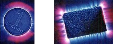 FOTOGRAFIAS KIRLIAN DE UMA MOEDA E DE UM ÍMÃ EM CORES