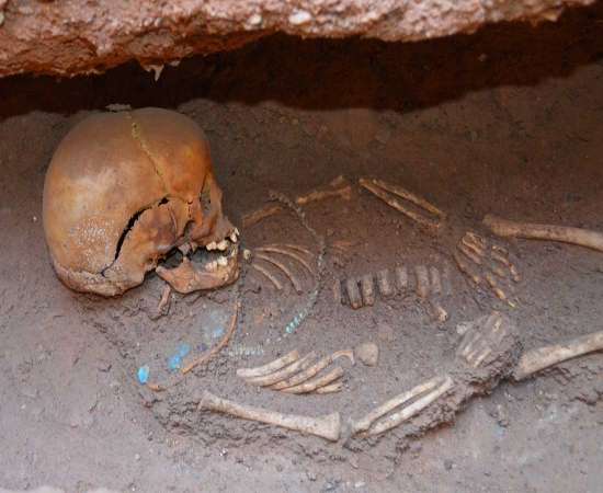 Os túmulos ao lado das pirâmides tinham sido amplamente saqueados, possivelmente na antiguidade, pelo tempo em que os arqueólogos escavaram. Investigadores encontraram restos de esqueletos e, em alguns casos, artefatos.
