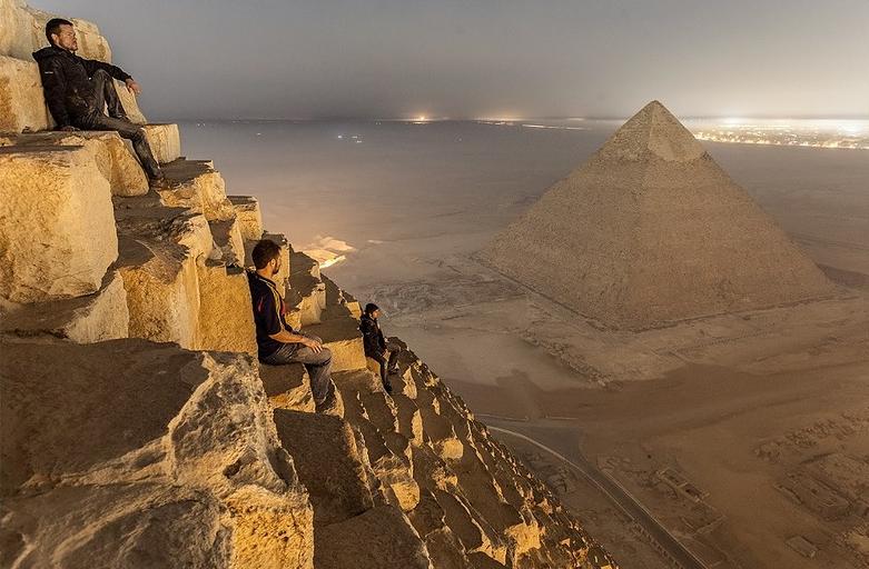 Semana passada, um grupo de fotógrafos russos aparentemente escalou a Grande Pirâmide de Gizé, no Egito. Eles se esconderam de guardas por quatro horas após o fim das visitas e começaram a subir. Segundo um dos fotógrafos, escalar a pirâmide pode dar punição de um a três anos. Mas valeu a pena. “Fiquei sem palavras”, ele escreveu. “Senti um prazer arrepiante, uma felicidade absoluta.”