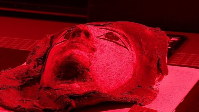 A escrita neles muitas vezes acabou obscurecida pelo gesso que une esses invólucros e as múmias. Mas pesquisadores conseguem ver por baixo desse material escaneando o gesso com diferentes tipos de luz, o que faz com que a tinta da escrita fique mais brilhante e sobressaia.
