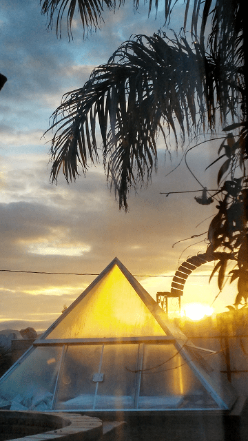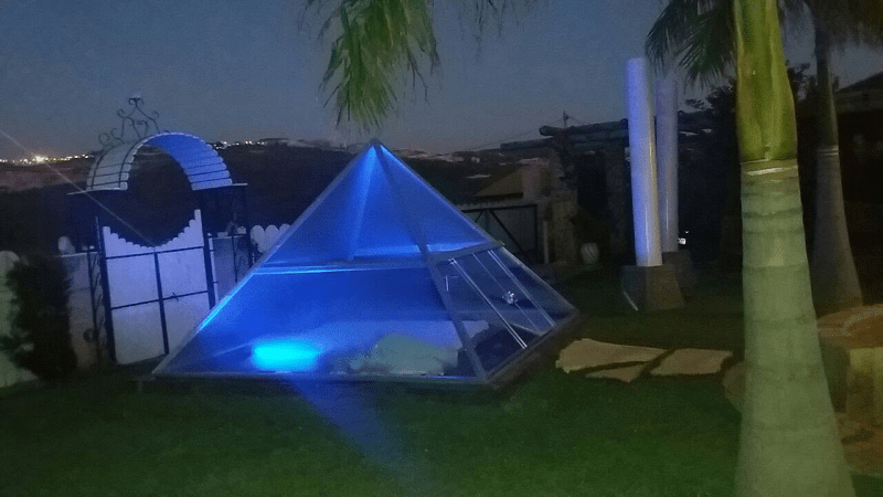 Objetivo é usar a energia da pirâmide (virtual, abaixo dela) para energizar a água que fica no tanque. A própria pirâmide também pode ser utilizada para fins terapêuticos e como quarto para dormir sob as estrelas.