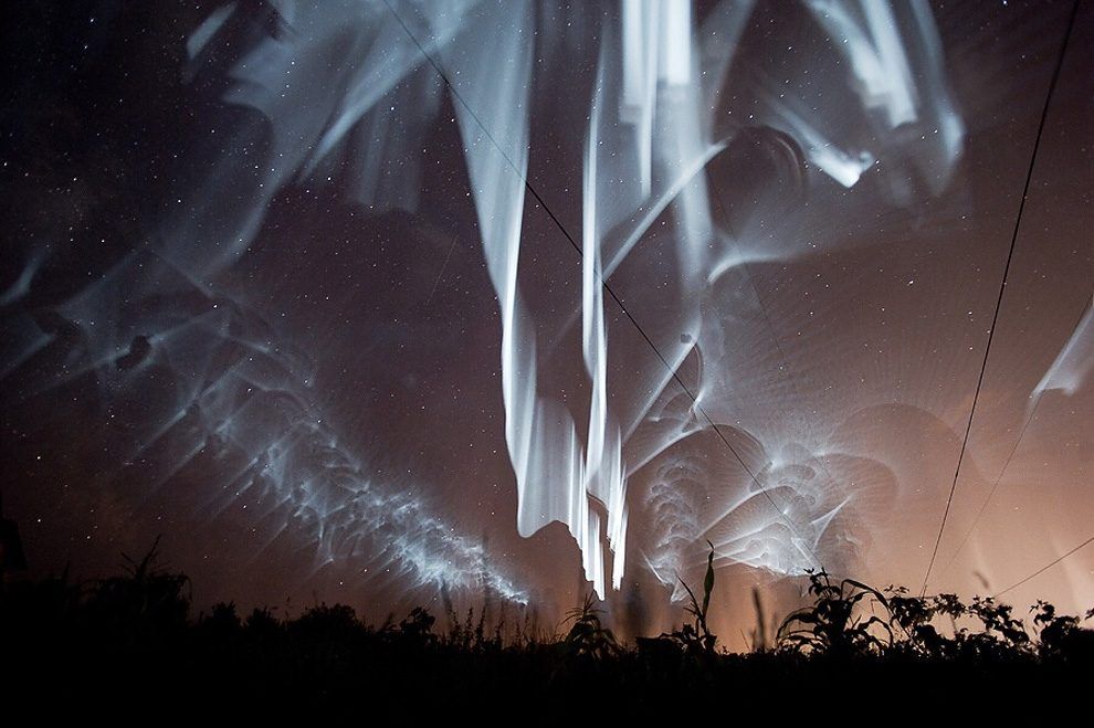 Finalmente, os arcos de hidrogênio (auroras difusas) são o resultado de fracos fluxos de partículas solares que fluem continuamente em direção à terra, mesmo quando você não tem erupções solares. Essas auroras difusas parecem muito incolores e são semelhantes em aparência à Via Láctea.