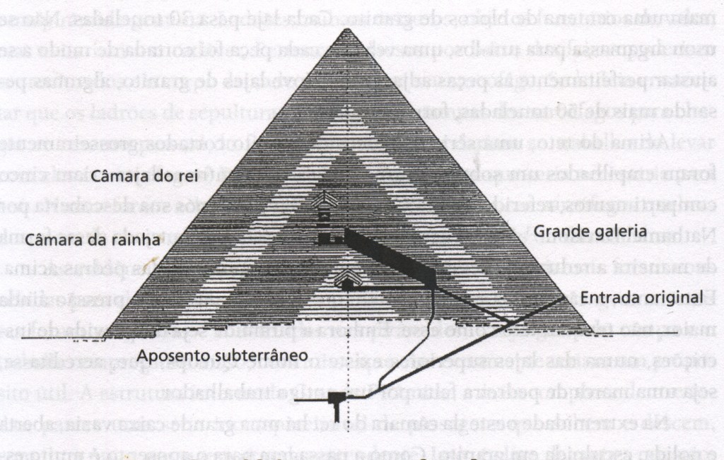 Segundo o historiador grego Heródoto, o corpo de Quéops foi colocado em uma sala bem no fundo da pirâmide, de maneira que a água de um canal alimentado pelo Nilo transformaria a sala em uma ilha subterrânea. Ninguém sabe se a câmara subterrânea é a sala à qual Heródoto se refere, mas se for, precisaria estar 30 metros mais fundo para ficar no nível do Nilo.9 Heródoto, que viveu 2 mil anos depois de a Grande Pirâmide ser construída, provavelmente estava relatando uma lenda. Nenhuma evidência sugere que essa história seja verdadeira.